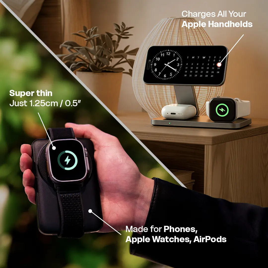 The easiest way to charge your iPhones, Apple Watches & AirPods. Made for home and travel, the PowerDock Pro® can be folded down easily for carry-ons.